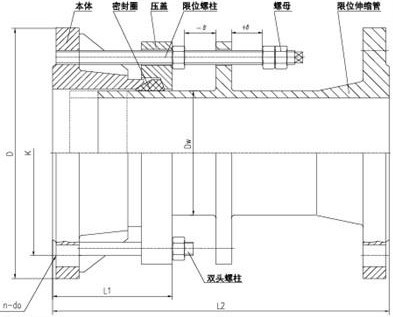 單法蘭松套限位伸縮接頭特點:實現了管道一邊法蘭連接,一邊為焊接的不一致性的方便連接。